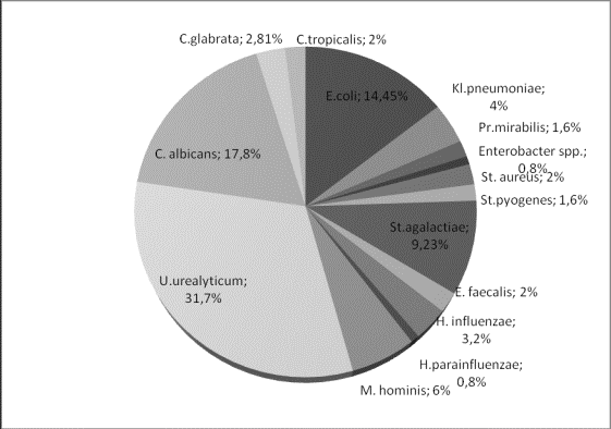 urealyticum (48,4%). Долева частка грибів Candida albicans