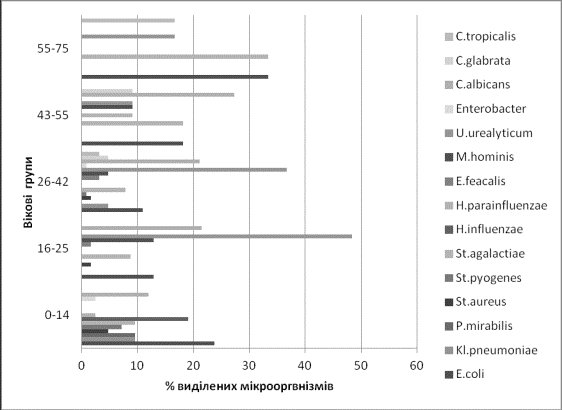 виділених із сечостатевої системи жінок віком 43-55 років. Зі зростанням віку в