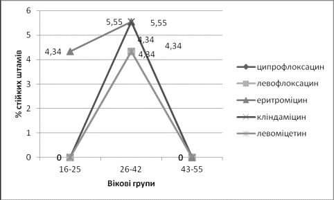 системи жінок 3-ї групи (26-42р.) високий рівень резистентності проявляли до гентаміцин