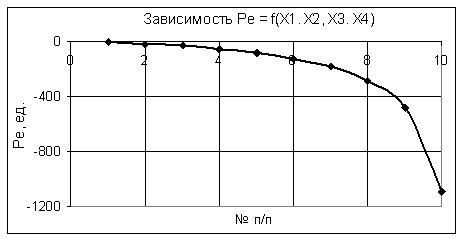 переменных в 10 раз, т.е. Х3 = Х4 = 1…0,1 значения силы Ре принимают отрицательную