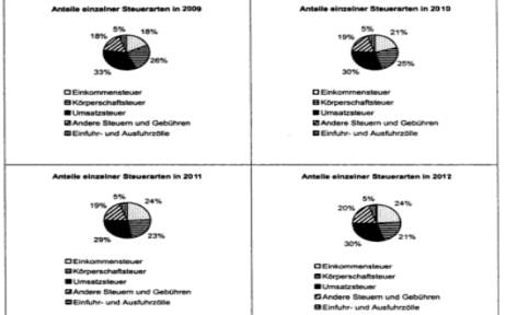 die relativen Anteile verschiedener Steuerarten am gesamten Steueraufkommen