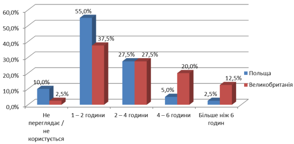 проводять біля комп’ютера від 4 до 6 годин на день. 42,5% молодих людей у