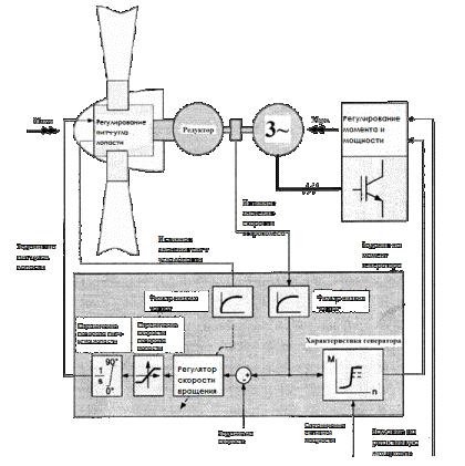 а регулирование скорости вращения ветровой турбины за счет влияния регулятора