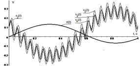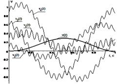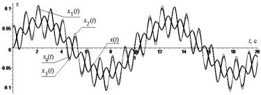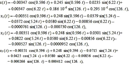 b2= 0.6 м/c, b3 = 0.1 м/c, b4 = 0.9 м/c, g = 40p рад/с, w = 3.3912 рад/с, w1=5.244рад/с, l1= 5.244 рад/с, l2 = 6.2164 рад/с, l3 = 0.5965 рад/с, F1 = 23.13