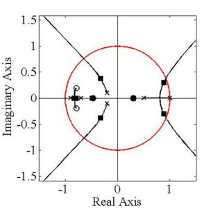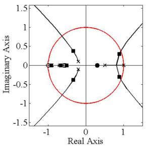 Рис. 2. Корневые годографы дискретной системы с передаточной