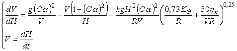 движения жидкости с высотой столба и пропускной способности задвижки, заданного