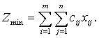 задачі є знаходження й мінімізація транспортних витрат (функція мети):