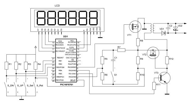 ключів, вимірювального та навантажувального резисторів, контролера, індикатор і