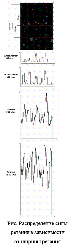 Рассчитанные усредненная характеристика нестабильности резания и коэффициент вариации (табл. 3) показали, что с увеличением ширины резания усредненная характеристика стремится к 1, а коэффициент вариации – к 0, из чего можно сделать вывод, что при увеличении ширины резания распределение силы резания становится более равномерным.