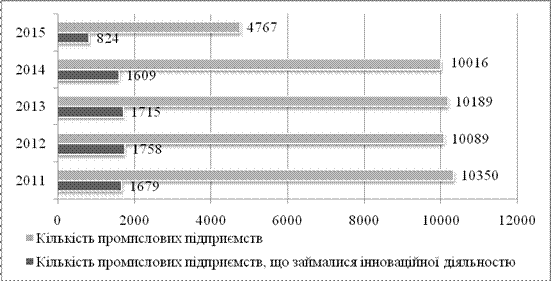 інноваційну діяльність в 2015 р. збільшилося у порівнянні з 2011 р. майже в два