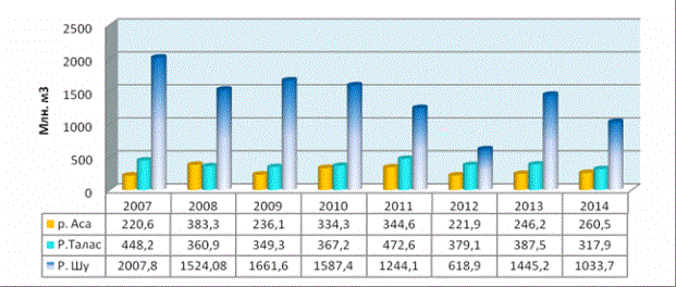 Сурет 3 . – Аса-Талас және Шу өзендері бассейіндеріндегі су