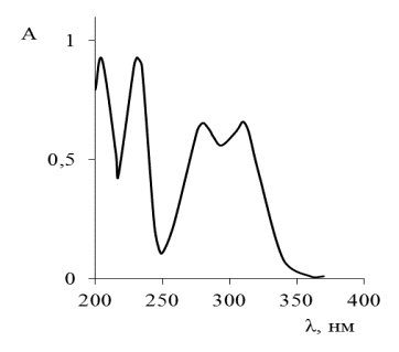 Рисунок 1 - Спектр поглощения этанольного раствора ванилина СВан= 2·10–4 моль/л, l = 1 cм