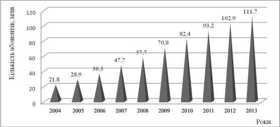 показник перевищив 111 млн. осіб (рис. 1), що становить 3,2% від всієї абонентської бази стільникових