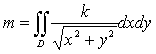 массу пластины, если в каждой точке ее поверхностная плотность обратно пропорциональна