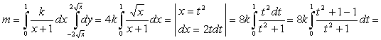 . Расстояние от любой точки пластинки до директрисы равно (х+1). Тогда согласно формуле (1) масса