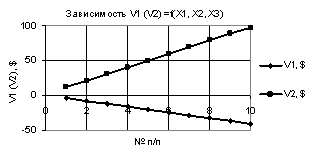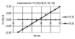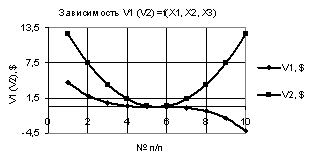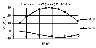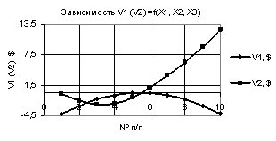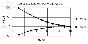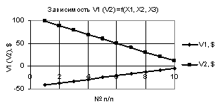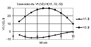 Рис. 3. V1 (V2) = f(X1, Х2, Х3) при