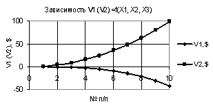 Рис. 2. V1 (V2) = f(X1, Х2,