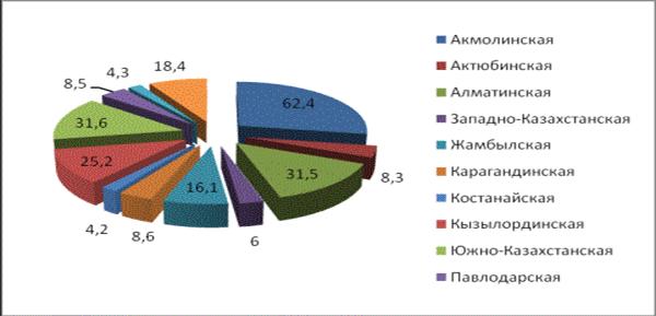 Рисунок 1. Эффективность инвестиций по регионам Казахстана