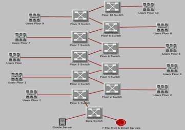 У результаті моделювання локальної комп'ютерної мережі багатоповерхової