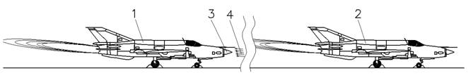 1. The scheme of the experiment: 1, 2 - the first and second aircrafts, 3- the