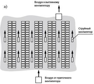 характеристик вентиляторов и уменьшению электрической мощности двигателей.