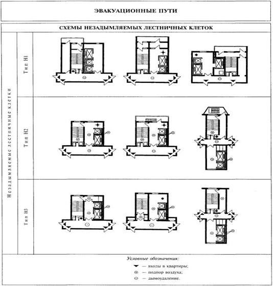 1. Схемы незадымляемых лестничных клеток. Эвакуационные пути