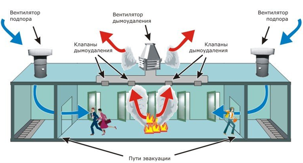 вентиляторов, которые способствуют вытягиванию дыма за пределы здания, а также