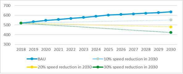 fleet would reduce emissions immediately by 4%. Further speed reductions of