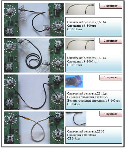 с оптическим диаметром 3 мм. На рисунке 4 показаны варианты оптоволоконных шин