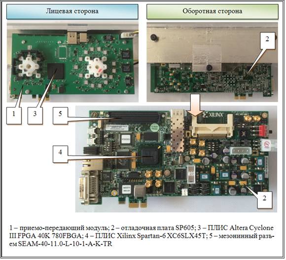 Сопряжение приемо-передающих модулей ЭО ПСС с отладочными платами SP605 осуществляется с помощью многоконтактных разъемов (160-и контактных мезонинных разъемов SEAM).