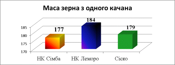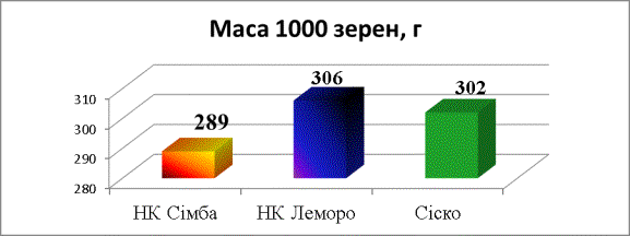 гібрид НК Леморо – 306 г. На 4г легшим виявилася маса тисячі зерен
