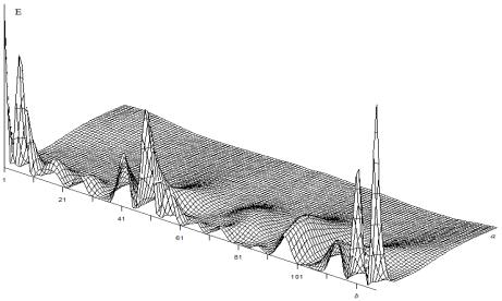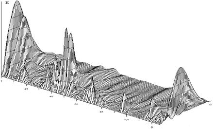 соответствуют номера сегментов n, а масштабный коэффициент а меняется от 1 до 50. На рис. 1 видно, что при больших значениях а (35-50) энергия сегментов W(a,b) имеет