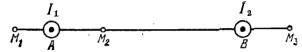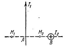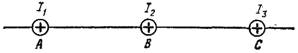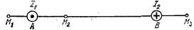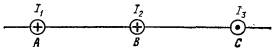 системы в виде трёх прямолинейных проводников с токами I1, I2