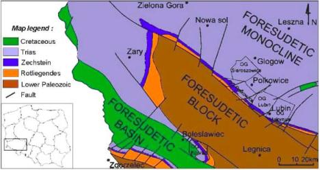 Poland. The thick Zechstein evaporates confine the fluids at the basement and