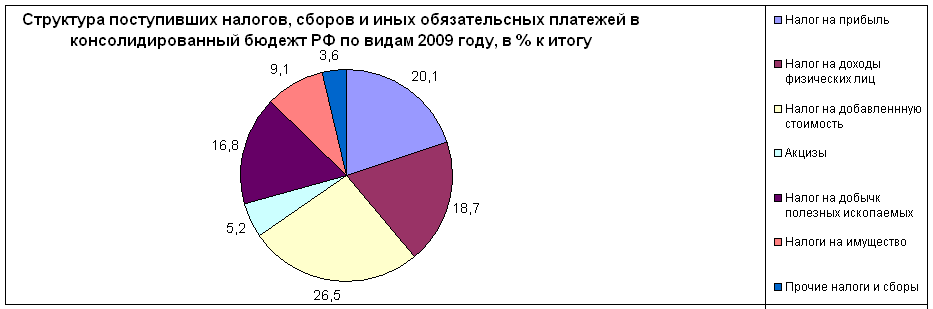 Рисунок 1. Структура поступивших налогов, сборов и иных обязательных платежей в консолидированный