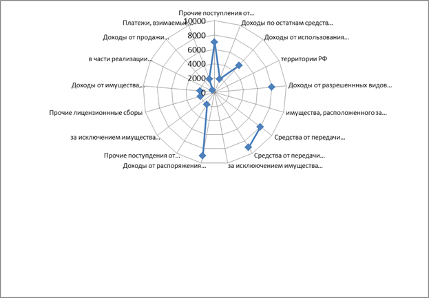 Рисунок 2. Доходоформирующая способность территории в 2018 год с помощью главных распорядителей средств бюджета РФ