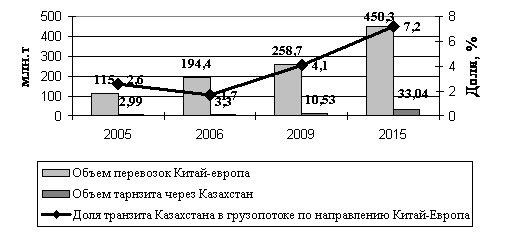 направлению Китай – Европа и транзита через Казахстан (рисунок 1). Через