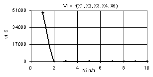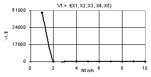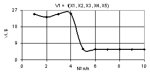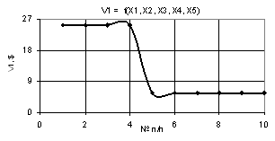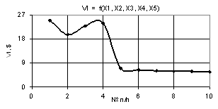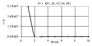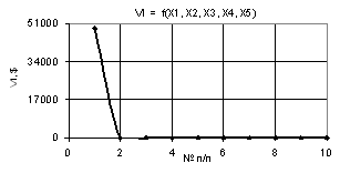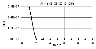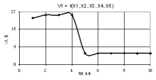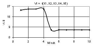 рис. 10 видно, что кривая V1 при переменных Х1 = Х2 =-10..-1, Х3 = -1..-10, Х4 = 1..10, Х5 = 0.99..0,1 аналогична кривым на рис. 4 и 8.