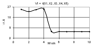 = Х3 = -1, Х4 = 1..10, Х5 = 0.99..0,1 построенная кривая V1 имеет минимум 23.14 в точке 2, после