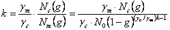 where γm – silicon melting density, g · cm-3; γc – density of the crystal, g · cm-3; g – fraction of crystallized melt; Nc – concentration of impurity in a crystal, cm-3;    Nm – concentration of impurity in the melt, cm-3; N0 – initial concentration of oxygen atoms in the melt, cm-3.