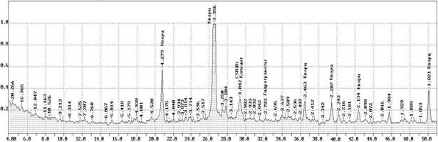слабоокристаллизованными низкоосновными гидросиликатами кальция (рисунок 2), образуя