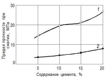 с 3,67 МПа до 7,63 МПа (рис. 6 и табл. 5). При этом образцы с 10–20% цемента