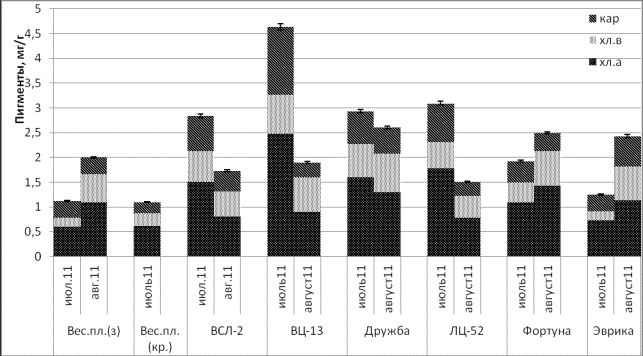 Рис.1 Содержание фотосинтетических пигментов