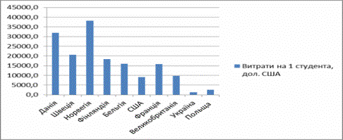 фінансування в Україні, особливо у витратах на 1 студента є значно нижчим