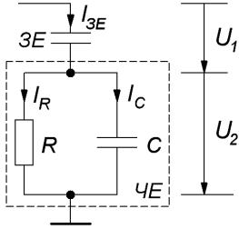 гармонічної напруги до послідовного кола, утвореного зразковим елементом ЗЕ і ємнісним чутливим елементом