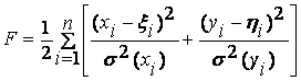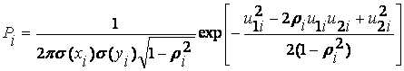 описываемую функцией Гаусса с математическими ожиданиями ξi и ηi, дисперсиями σ2(xi), σ2(yi) и