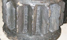 с рабочей стороны (рисунок 3а,б,в), появляются наплывы у ножек зуба с рабочей