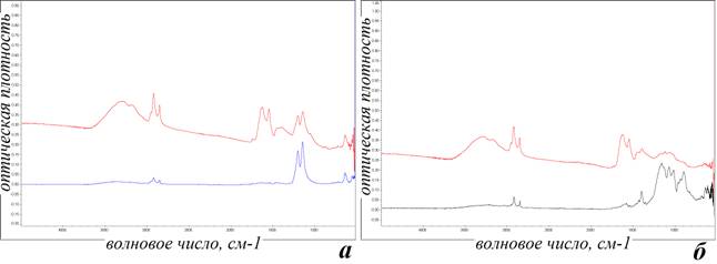 2. ИКС НПВО: а - Cu на ПТФЭ (верх), ПТФЭ (низ), б - Cu на резине