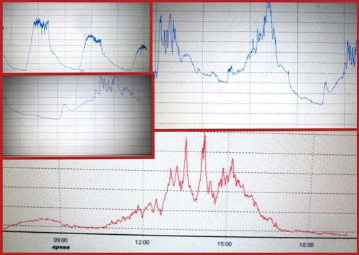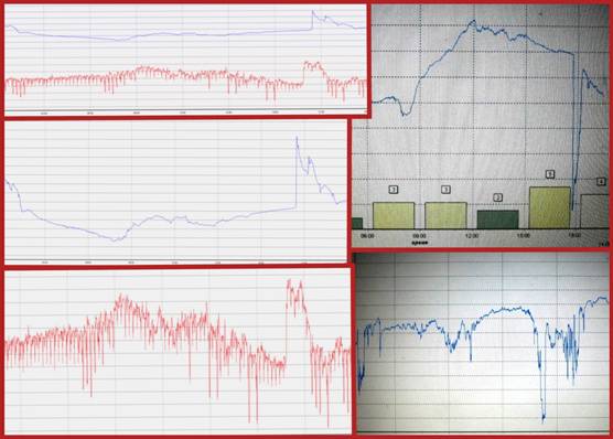 фрагменты односуточной и трёхсуточной регистрации изменения ЭП в моменты