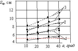 мм; 2 – 50 мм; 3 – 60 мм Рисунок 3 – Влияние угла